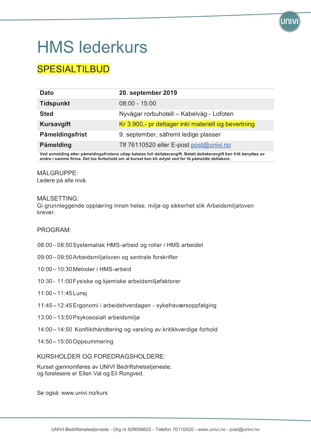 HMS lederkurs 20. september 2019 Nyvågar rorbuhotell Kabelvag Lofoten